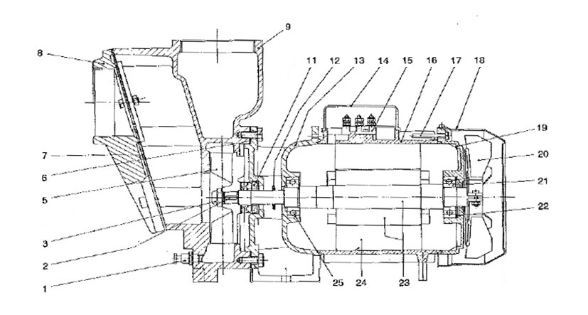 Combinaison d'une pompe auto amorçante (avec palier et arbre nu) et d'un moteur électrique, en un seul bloc