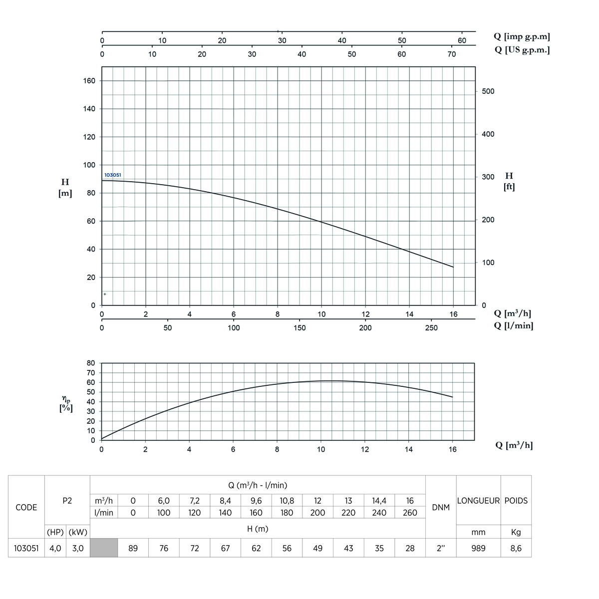 Hydraulique 250 l/min pour pompes de forage de diamètre 4’’ pour usages industriels ou agricoles