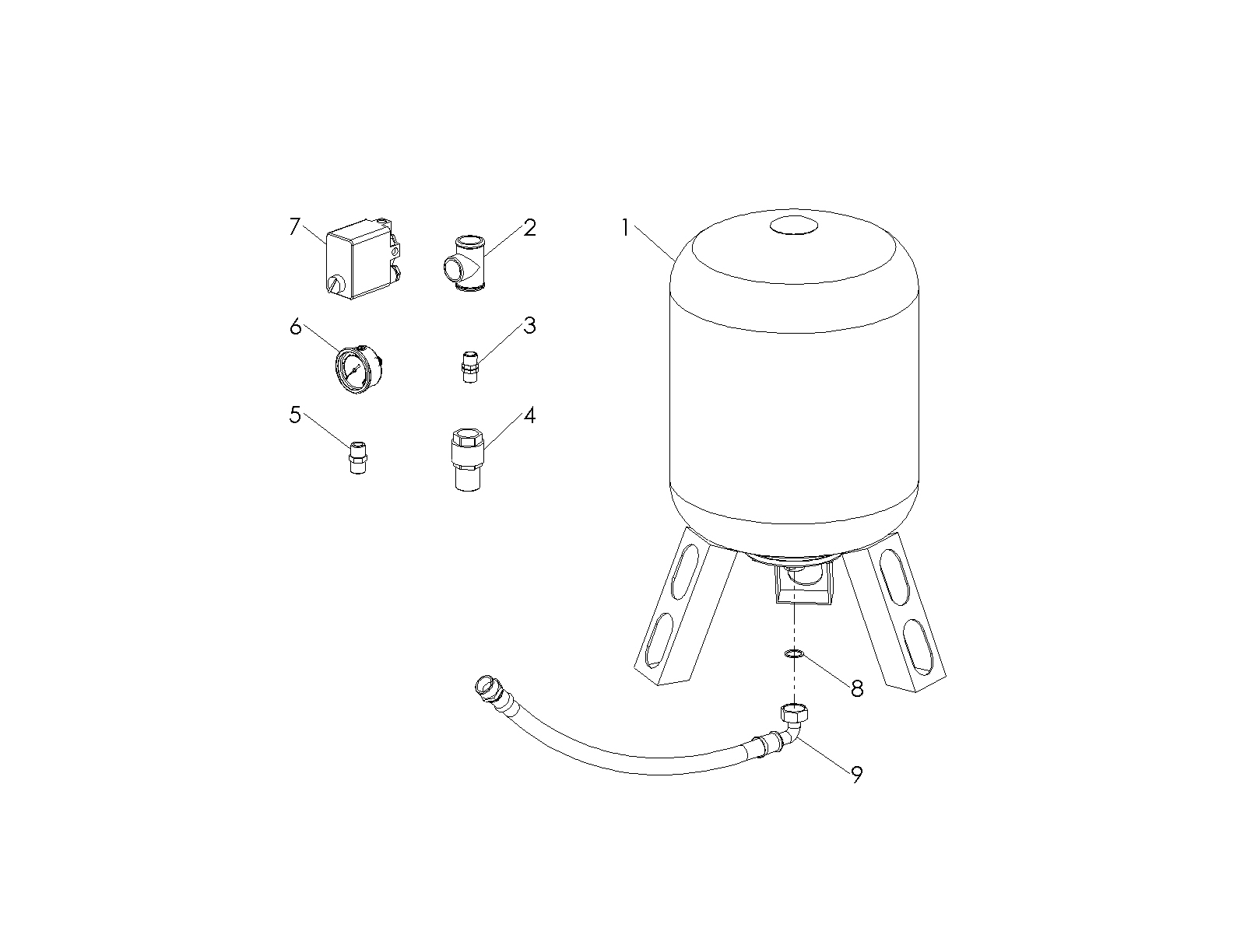 RESERVOIR A VESSIE VERTICAL 100L PRESSION MAX 10BARS