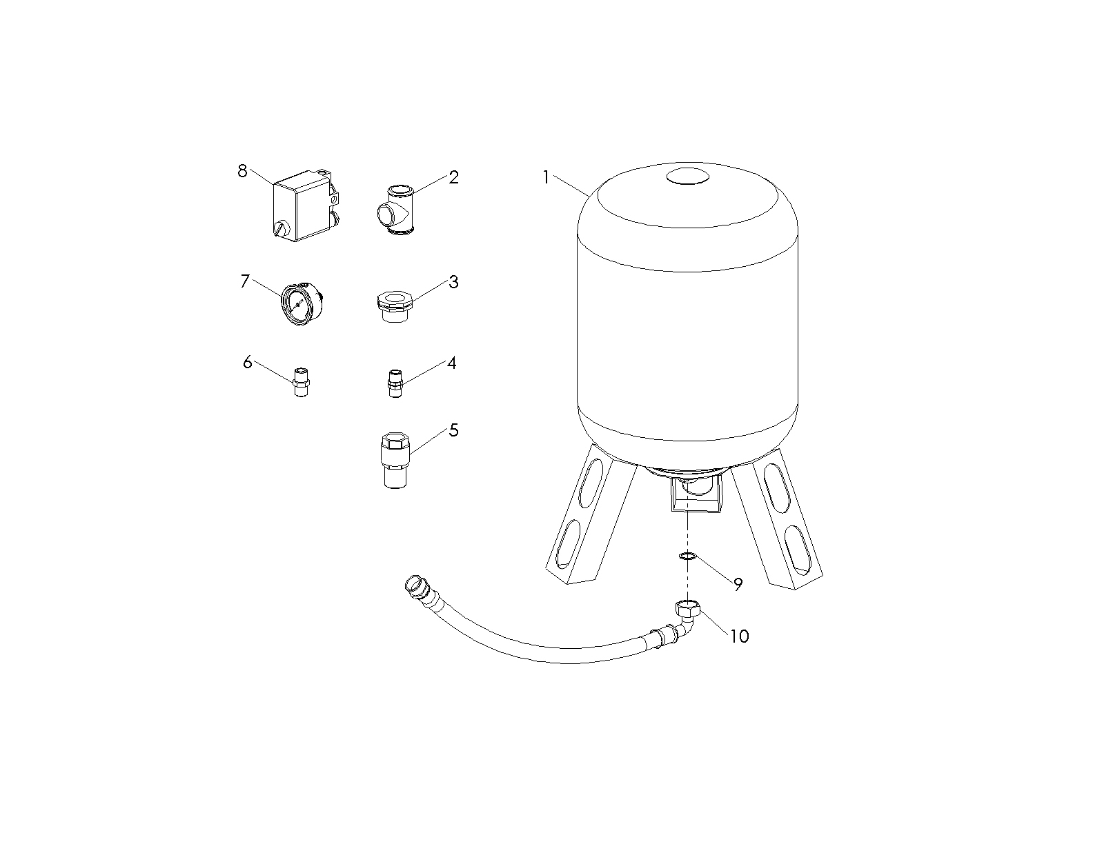 RESERVOIR A VESSIE VERTICAL 60L PRESSION MAX 10BARS