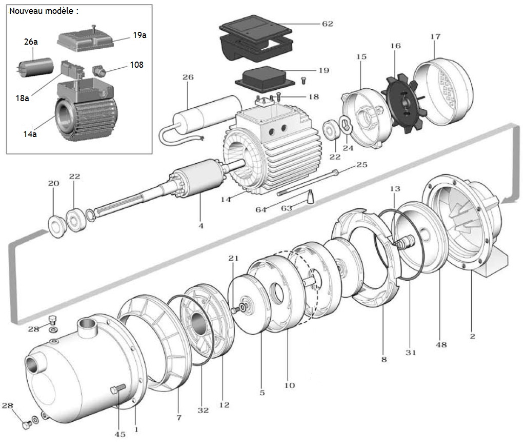 STATOR MONOPHASE POUR POMPE CM100 NEW MODELE