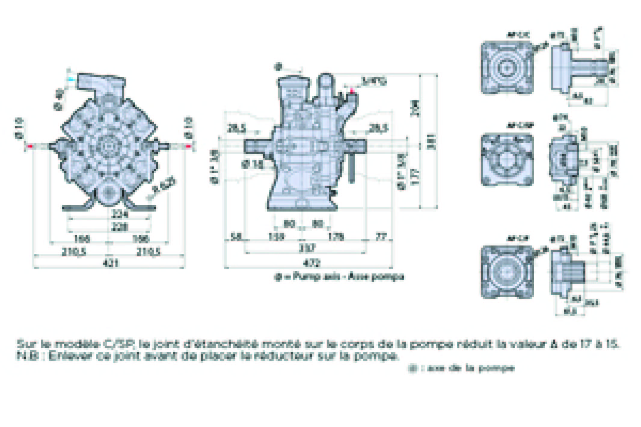 Pompe à quatre membranes semi-hydrauliques pour pulvérisation haute pression. Recommandée particulièrement pour la pulvérisation des vergers et des vignobles. Le corps de pompe est en aluminium et toutes les parties en contact avec des liquides de pulvérisation sont anodisées.
