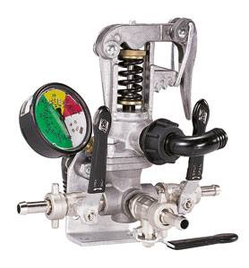 Groupe de commande avec levier de réglage de pression et équipé d’un manomètre avec cadran coloré.