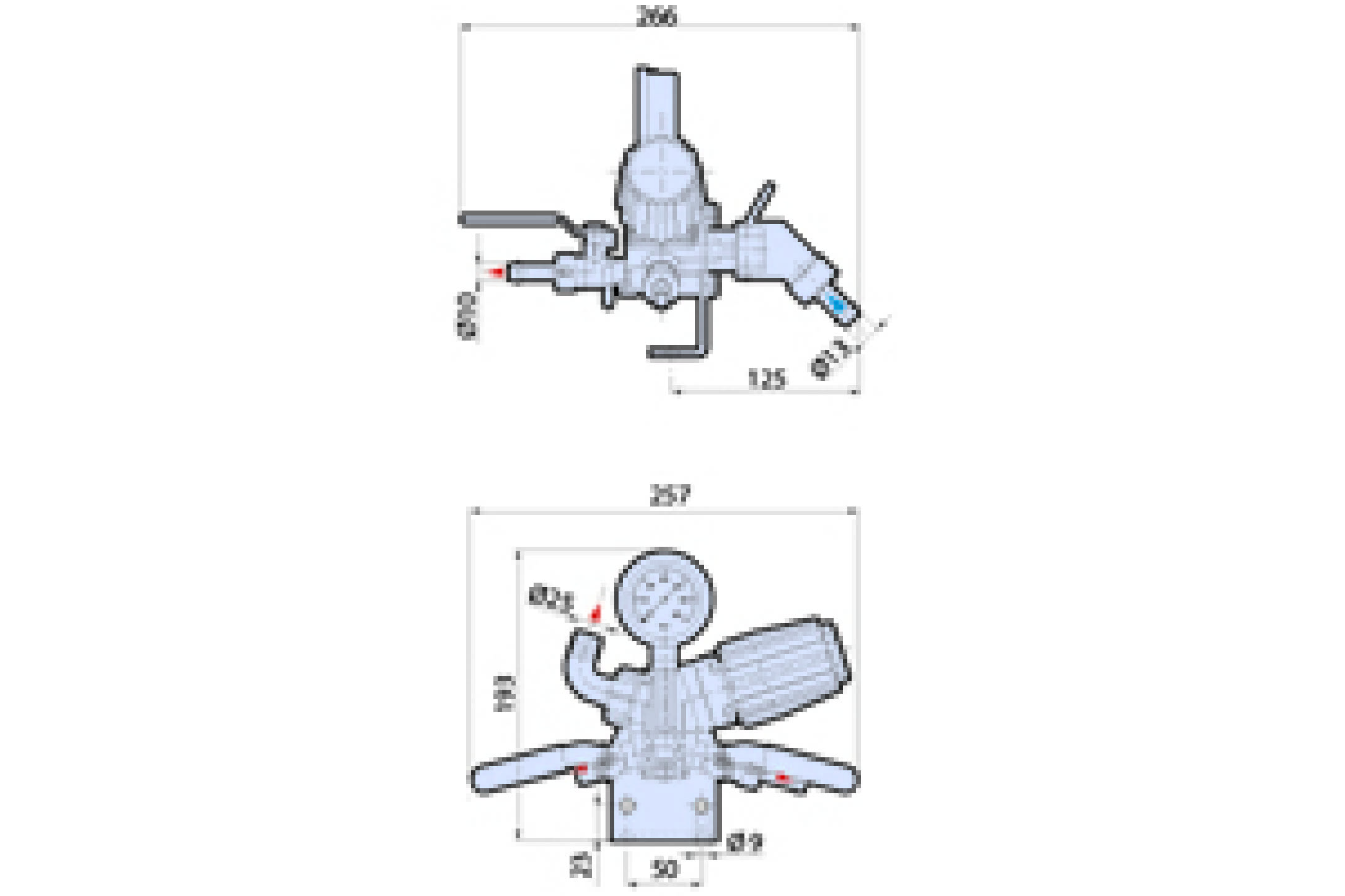 Groupe de commande avec vanne de régulation de pression de travail et équipé d’un contrôle by-pass et d’un manomètre avec cadran coloré.