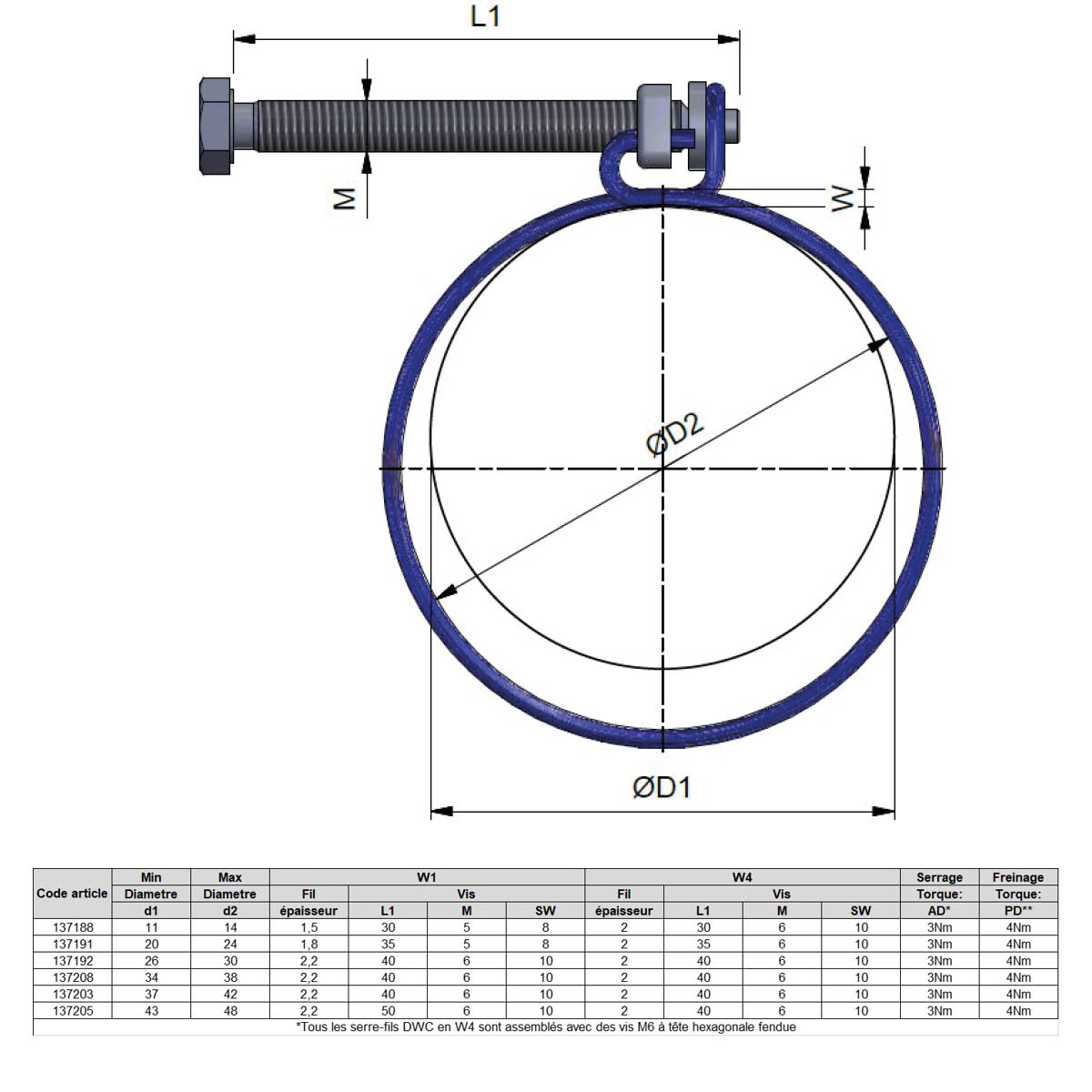 COLLIER DE SERRAGE FIL ACIER
