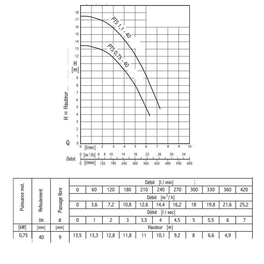 Pour HMT 13,5 mètres = débit de 0 m3/h ; 0 l/min