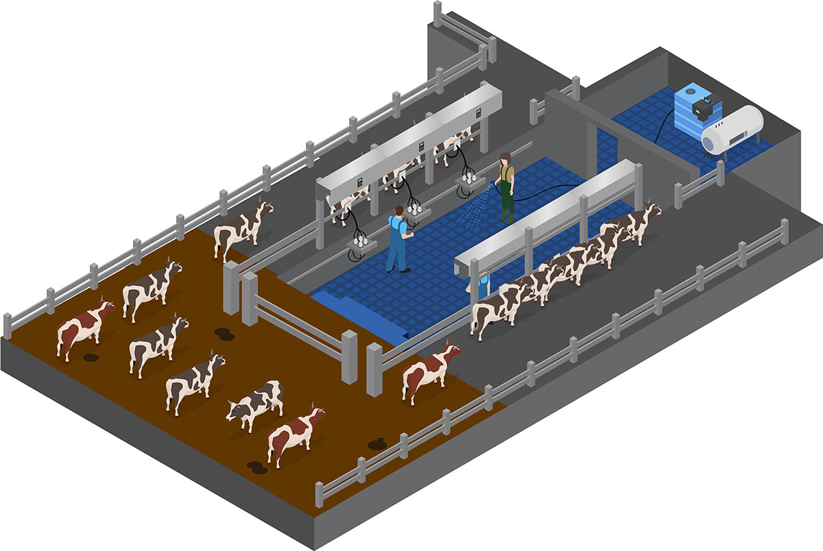 Outre le fait que vous réutilisiez l’eau savonneuse pour le nettoyage de votre salle de traite, vous optimisez également le volume de stockage de votre fosse à lisier car le volume d’eau économisé correspond à un volume de stockage économisé.