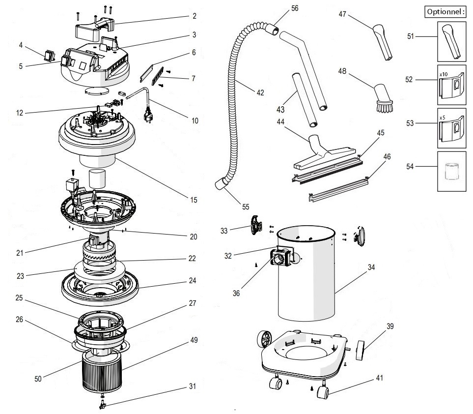 Fonctionnel avec le porte-accessoires, le porte-câble électrique et la poignée ergonomique. Il peut être utilisé avec ou sans sac.