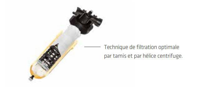 Préfiltration centrifuge à effet cyclonique