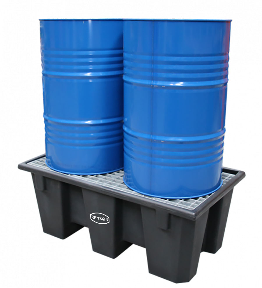 Ce bac de rétention de 225 litres est conçu pour le stockage d'un fût de 220 litres. Il est fabriqué en polyéthylène haute densité (PEHD) avec un caillebotis amovible en acier. Il offre une capacité de charge de 300 kg et est équipé de passages de fourches sur deux côtés pour faciliter la manipulation. Ce produit présente un excellent rapport performance/prix et n'est pas empilable.