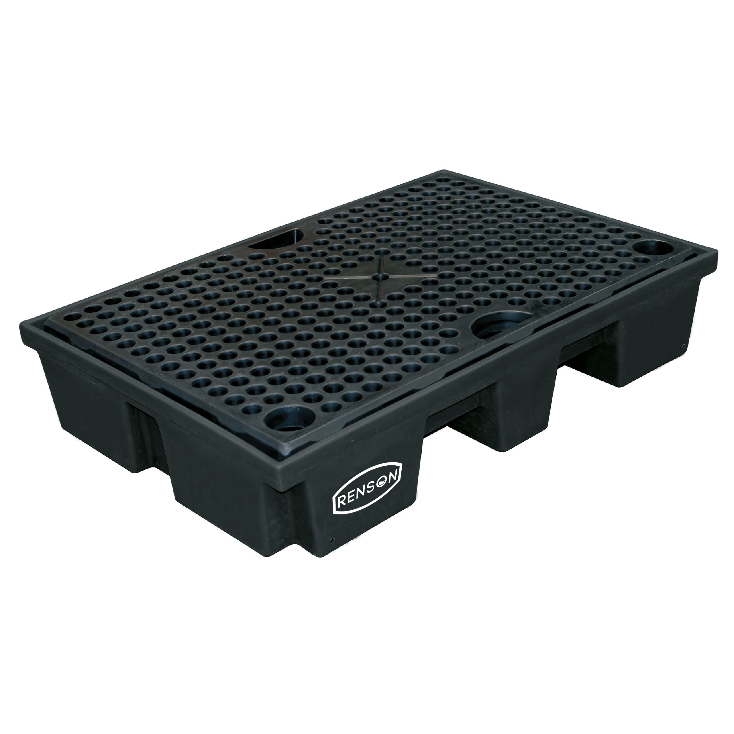 Le bac de rétention de 120 litres est conçu pour contenir un IBC. Il est fabriqué en polyéthylène haute densité (PEHD) avec un caillebotis amovible en plastique. Ce bac est emboîtable pour optimiser l'espace de transport et de stockage. Il mesure 1240 x 840 x 230 mm Il supporte une charge maximale de 500 kg et possède des passages de fourches sur deux côtés pour une manipulation facile.