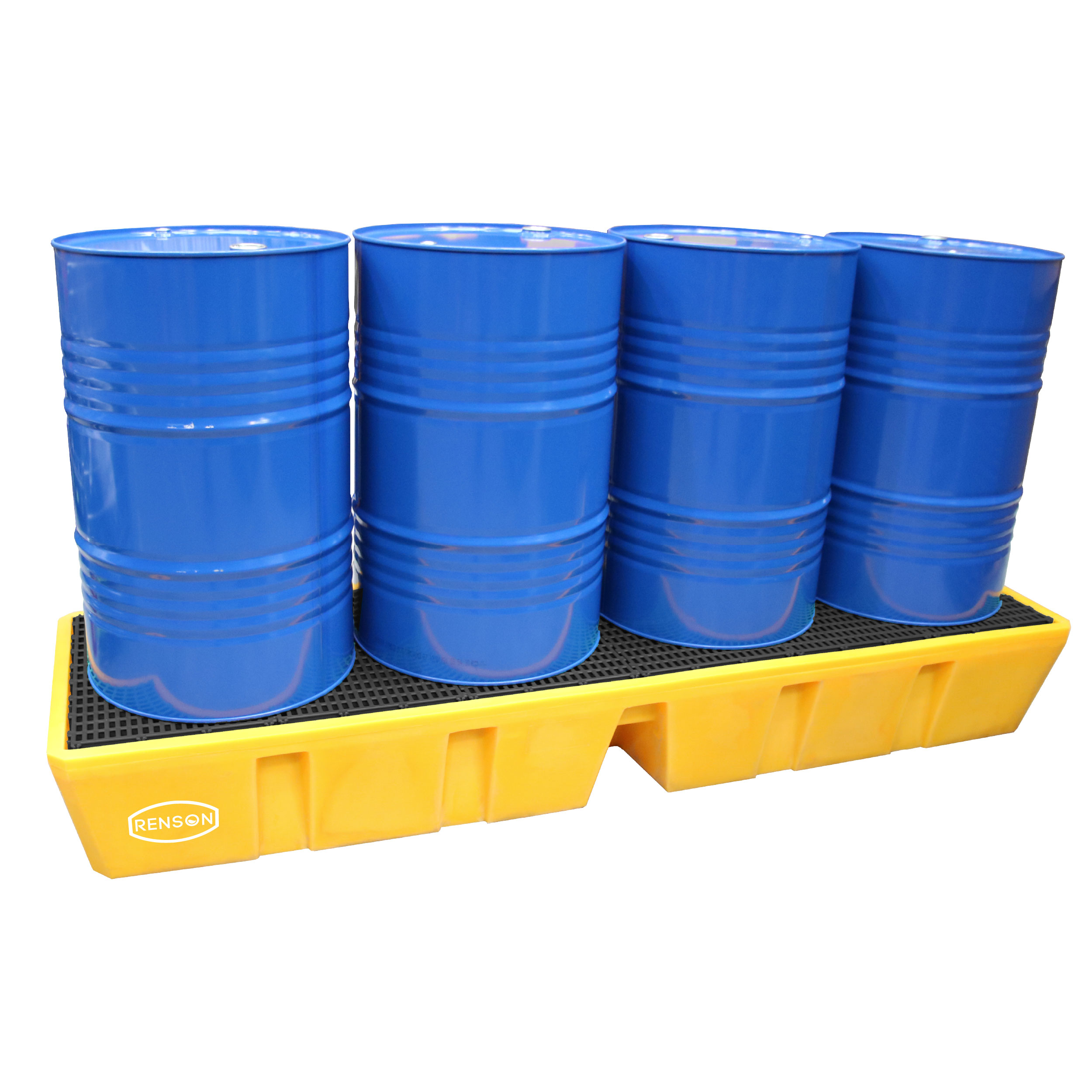 Le bac de rétention de 450 litres longitudinal est conçu pour contenir un 4 futs. Il est fabriqué en polyéthylène haut densité (PEHD) avec un caillebotis amovible en plastique. Il mesure 2470 x 710 x 330 mm. Il supporte une charge maximale de 1100 kg. Ne possède pas de passages de fourches sur deux côtés pour une manipulation facile. Il est adapté à l'utilisation de futs de 200 L et optimise l'espace de stockage et de transport.