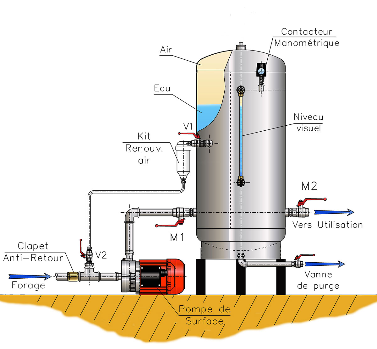 N'oubliez pas de commander le kit de mise en oeuvre (code 980146) pour installer votre réservoir (composé d'une valve de gonflage, d'un bouchon, d'un pressostat et d'un manomètre).