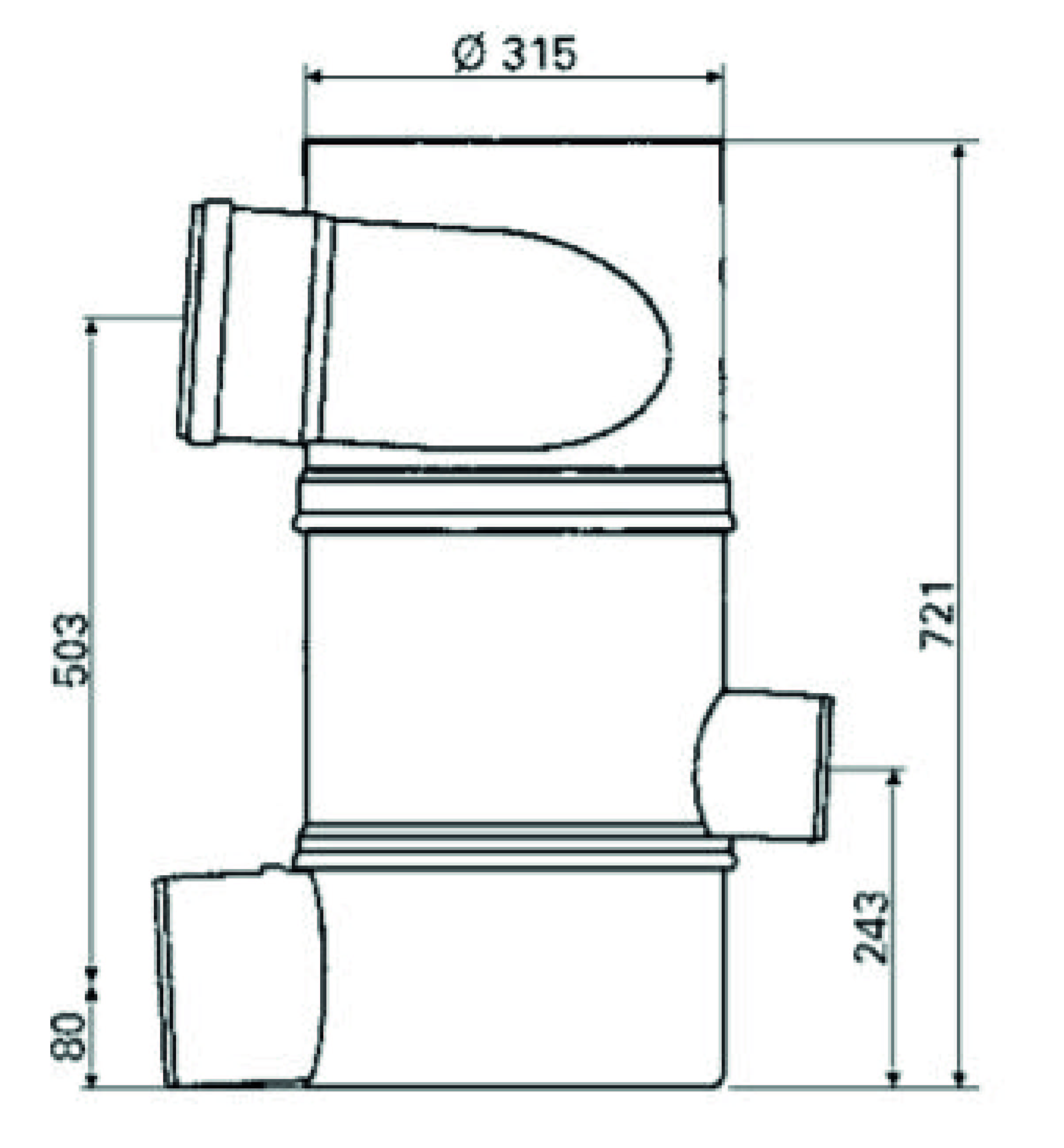 - Entrée d'eau de pluie : DN150, pivote à 360°