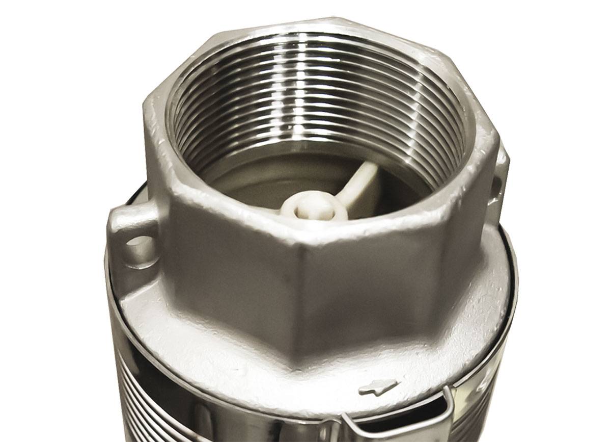 - le clapet anti-retour est intégré au corps de refoulement (partie supérieure) pour retenir la colonne d’eau sans endommager les turbines et les diffuseurs (test sévère de longévité de plus de 600.000 de coups de bélier à 37 bars)