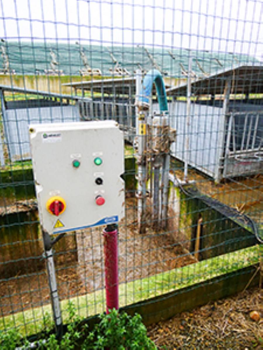 Voyants lumineux : blanc pour la mise sous tension, vert pour la marche moteur, rouge en cas de défaut moteur et jaune indiquant un niveau bas lisier