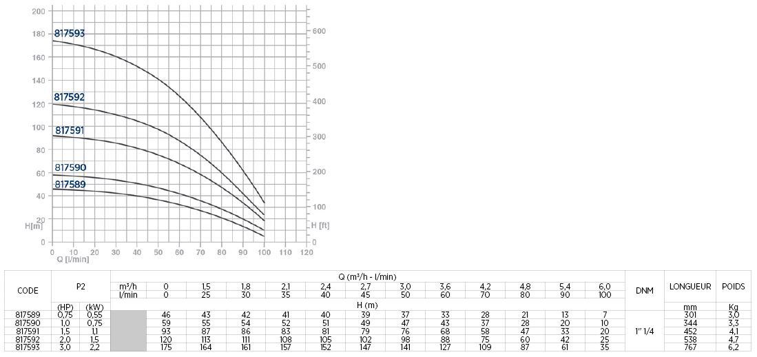 103895 : HYDRAULIQUE DE FORAGE 100L/MIN POUR MOTEUR 2.2Kw 1''1/4