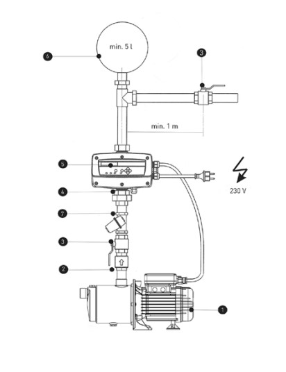 Le contrôle est possible grâce à un capteur de pression et à un capteur de flux raccordés au variateur de fréquence.