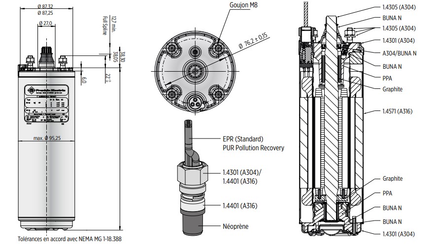 • Les enroulements des moteurs encapsulés sont hermétiquement scellés dans le stator et noyés dans de la résine anti-arc qui les fixe mécaniquement et assure une dissipation thermique rapide