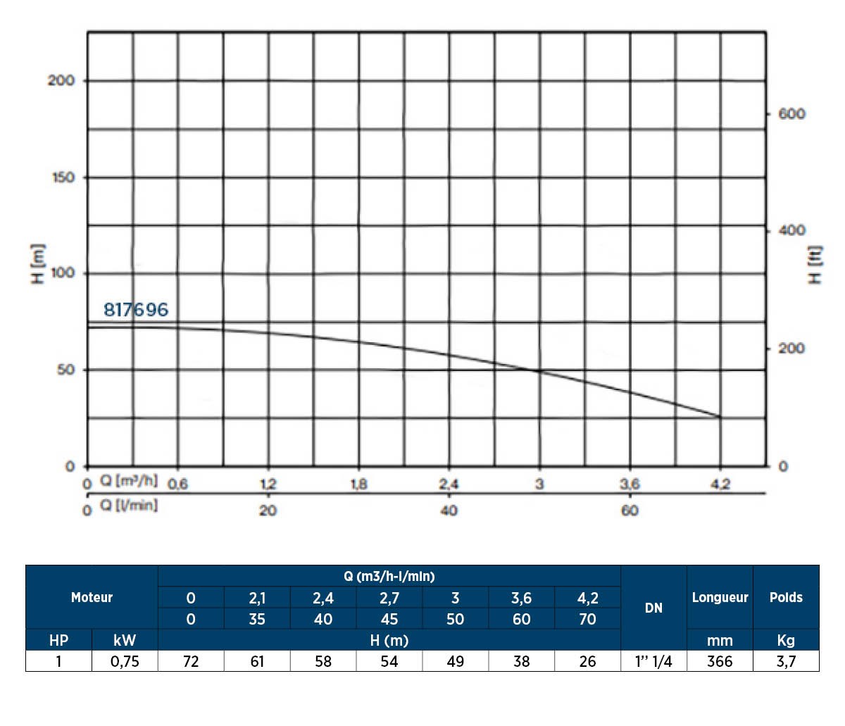 817666 : MOTEUR POUR POMPE DE FORAGE BAIN EAU 4" INOX MONOPHASÉ 0.75KW