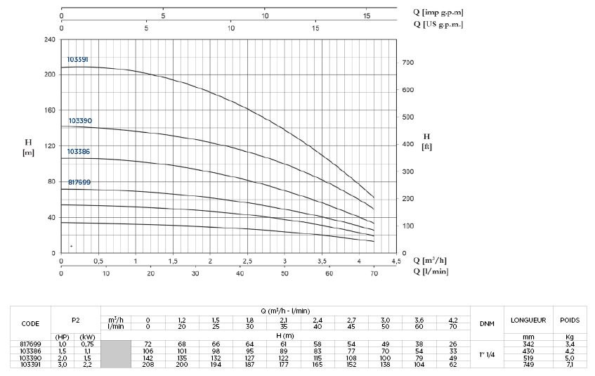 POMPE DE FORAGE 4'' 60L/MIN