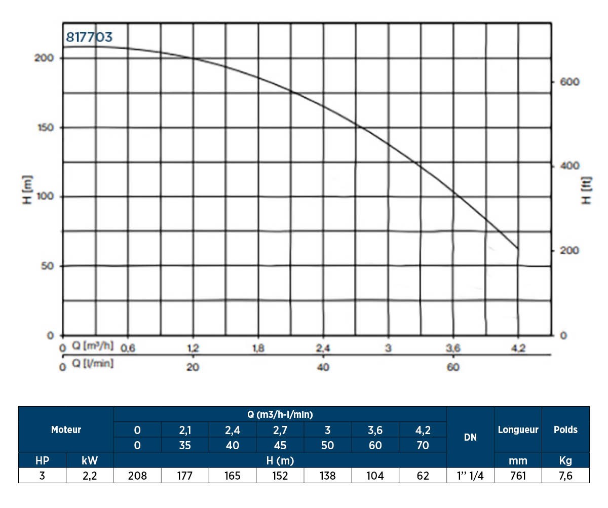 POMPE DE FORAGE 4'' 70L/MIN