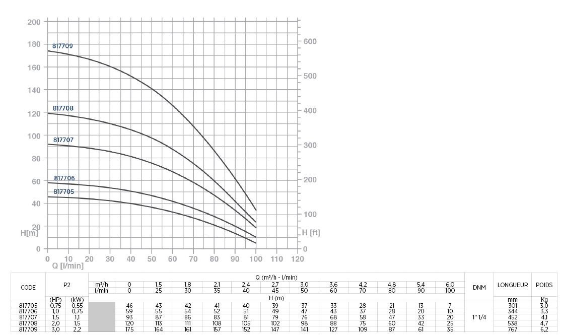 103891 : HYDRAULIQUE DE FORAGE 100L/MIN POUR MOTEUR 0.55Kw 1''1/4