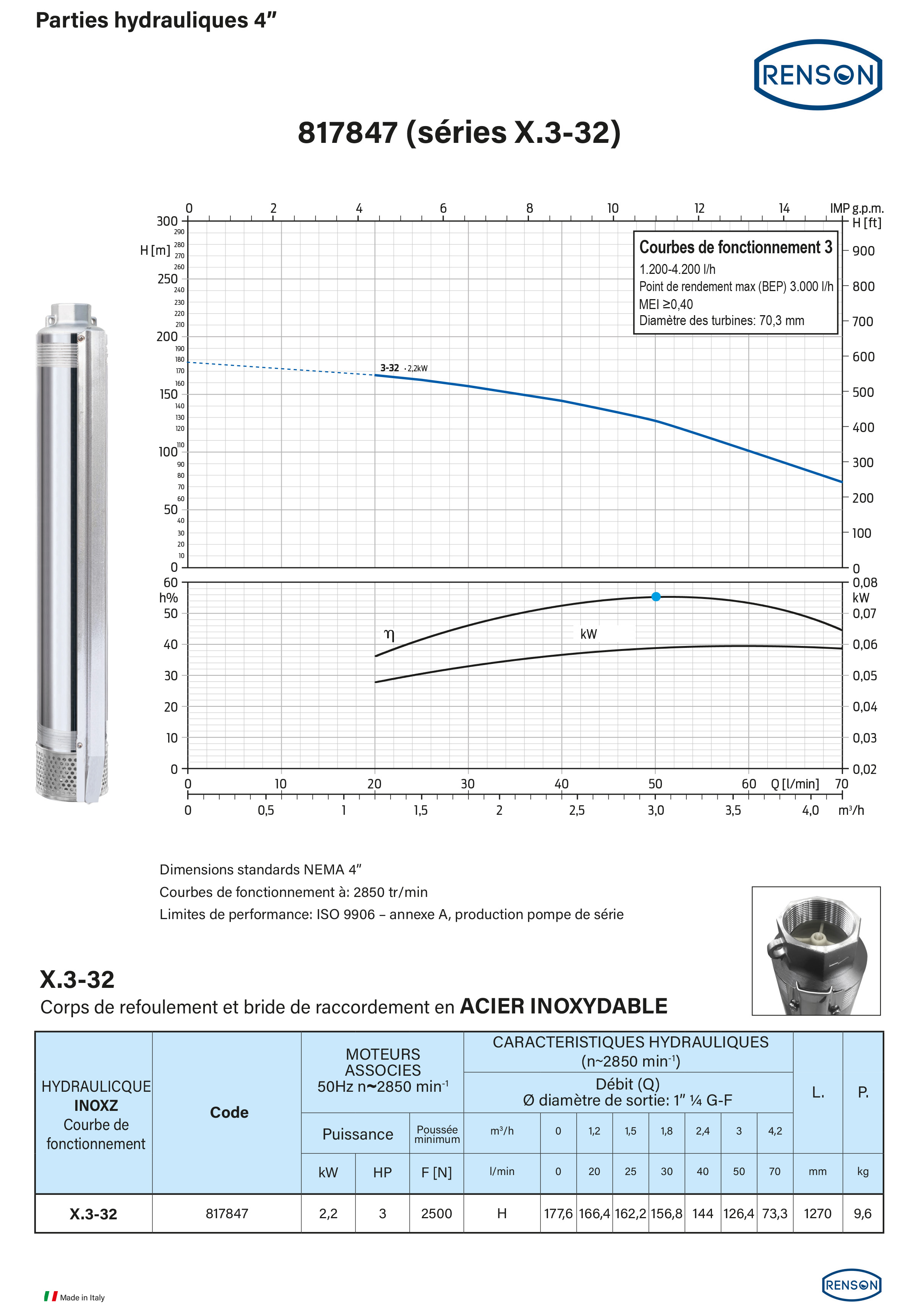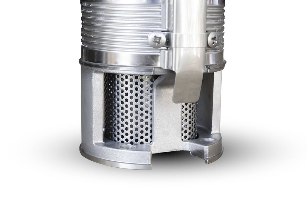 • Corps de refoulement et bride de raccordement avec crépine en acier inoxydable