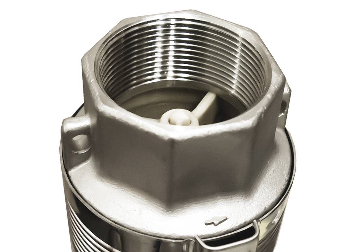 - le clapet anti-retour est intégré au corps de refoulement (partie supérieure) pour retenir la colonne d’eau sans endommager les turbines et les diffuseurs (test sévère de longévité de plus de 1.000.000 de coups de bélier à 37 bar)