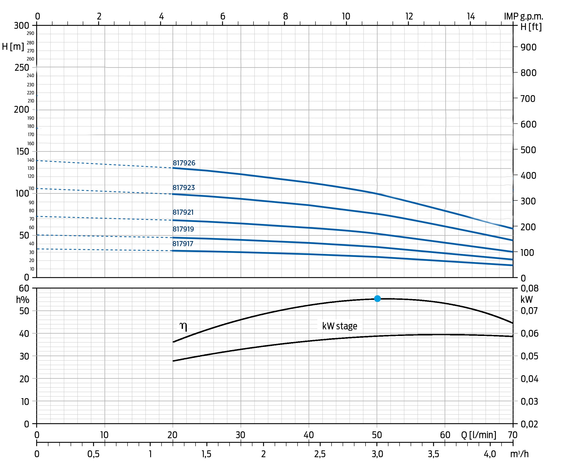 - Débit maximum (Q): 4.2 m3/h ; 70 l/min