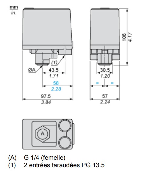 - Type de raccordement hydraulique : G 1/4 (femelle)