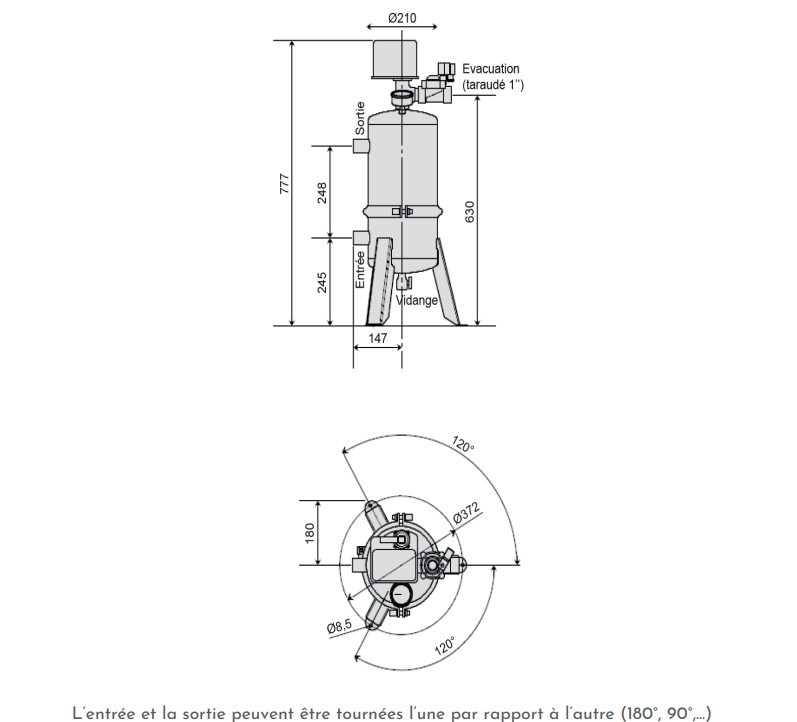 - Perte de charge maximale du filtre : 0.5 Bar