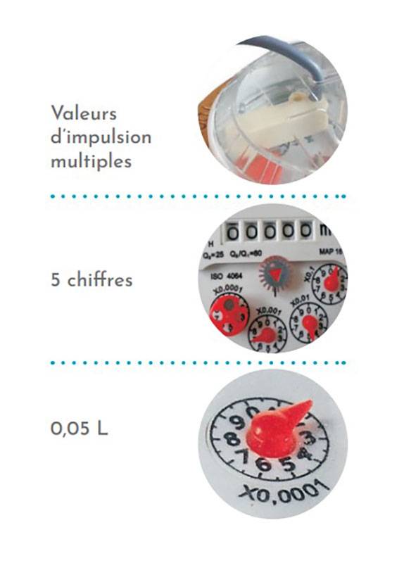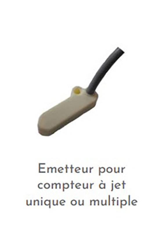 Un émetteur d'impulsions sert à transemttre un certain volume d'eau vers un système électronique de comptage ou de gestion (pompe doseuse par exemple).