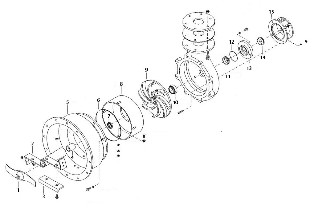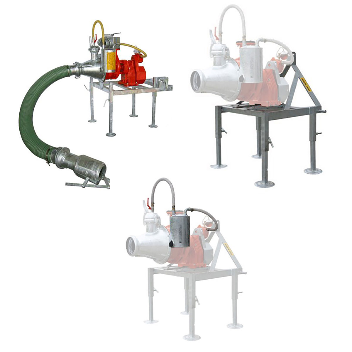 • Pompe hacheuse et turbine ouverte à amorçage automatique et axe horizontal