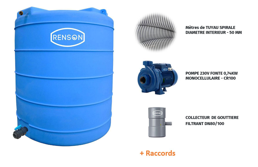 1 x CUVE STOCKAGE EAU VERTICALE BLEUE EN PE 3000L PRE EQUIPEE (code 817676)