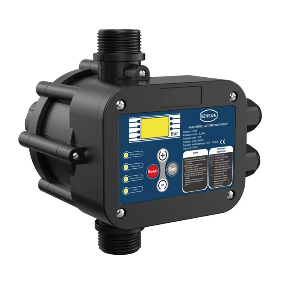 Le Mascontrol permet de mettre en route et d’arrêter une pompe grâce à sa carte électronique associée à un capteur de débit et une membrane. Il gère automatiquement le fonctionnement