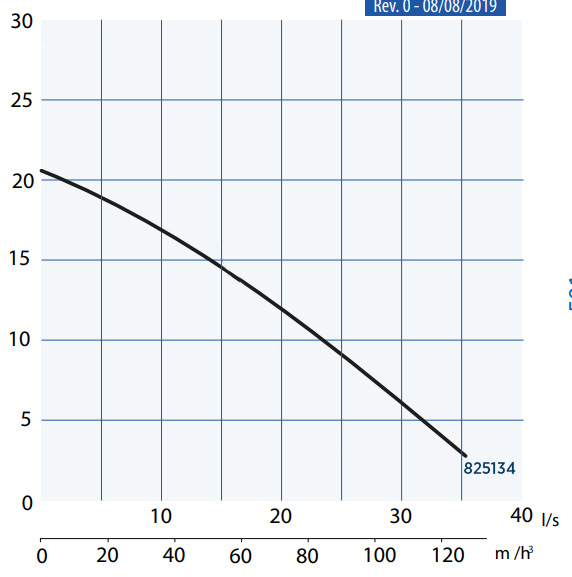 Pour HMT 0 mètres = débit de 125 m3/h ; 2000 l/min