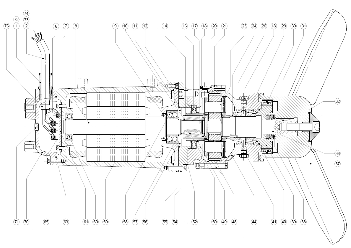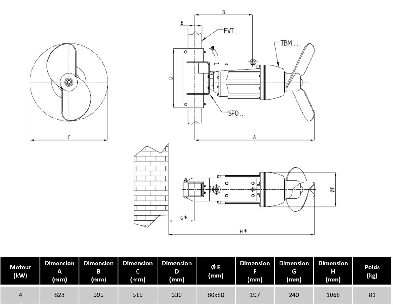 Robuste : corps en fonte, hélice en acier inoxydable, réducteur planétaire, faible vitesse de rotation des pâles