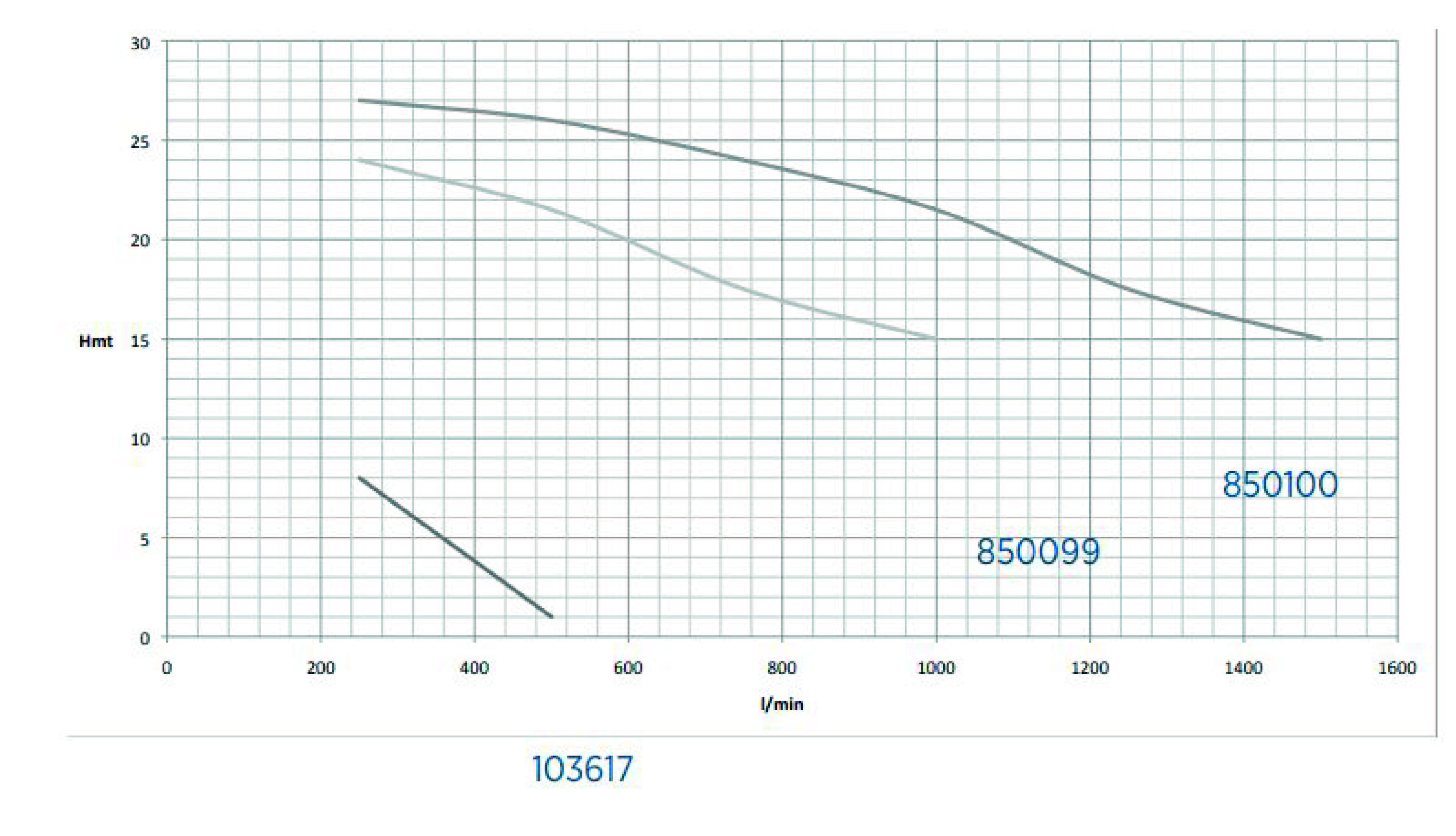 Débit (litres/1’) 350 > Hauteur (mètres) 27