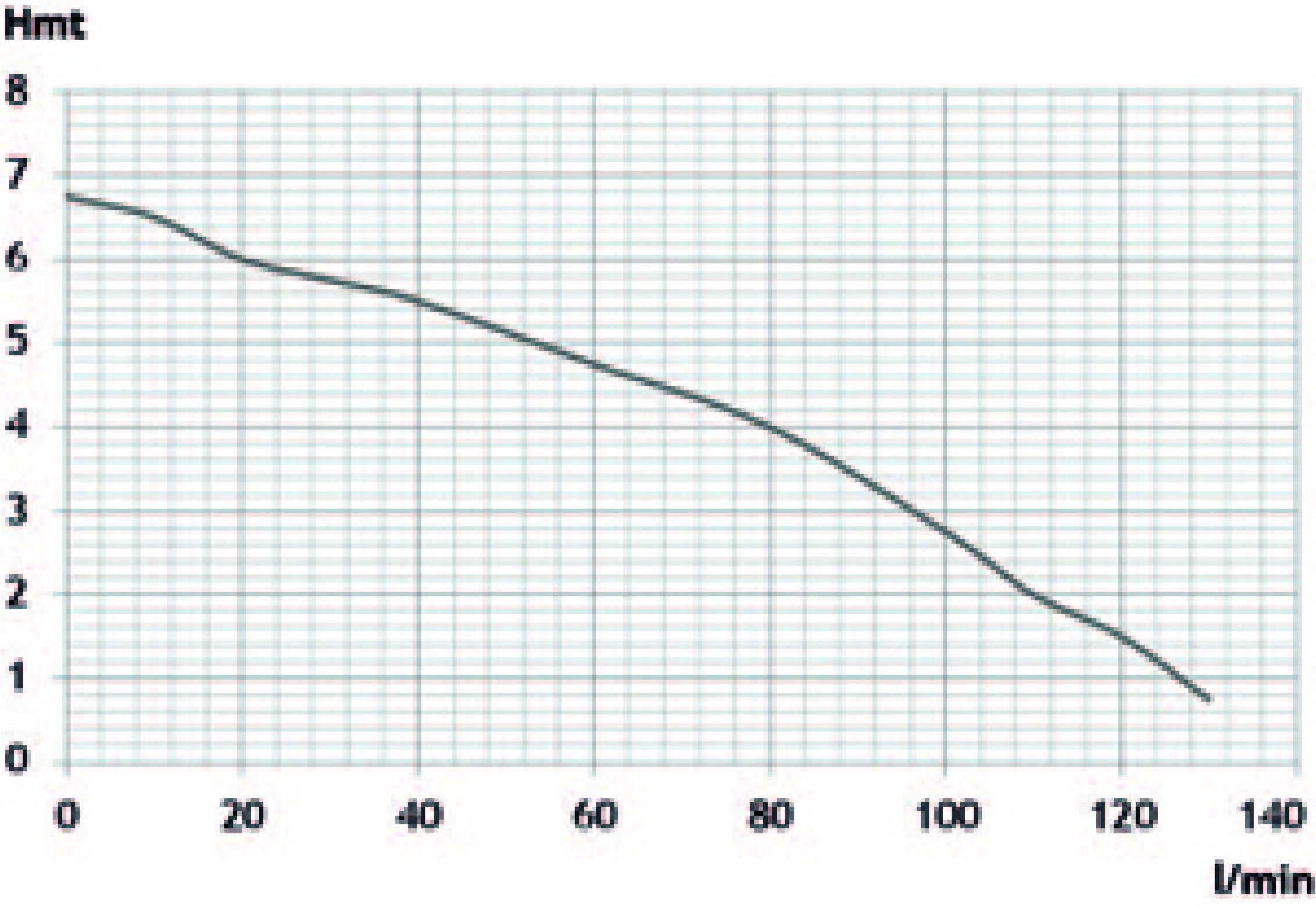 Pour HMT 0,75 mètre = débit de 7,8 m3/h ; 130 l/min