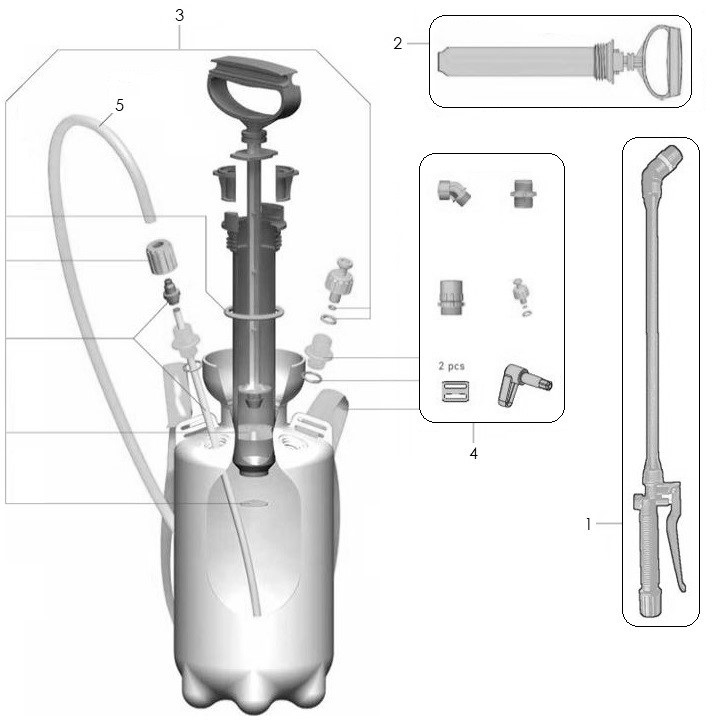 KIT PIECES DETACHEES - ACC POUR PULVERISATEUR 5L & 10L
