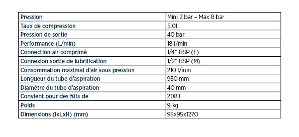 Pompe pneumatique 5:1: Pompes conçues pour la distribution d’huiles à forte viscosité (SAE15/240) sur des installations longues et avec distributions simultanée.