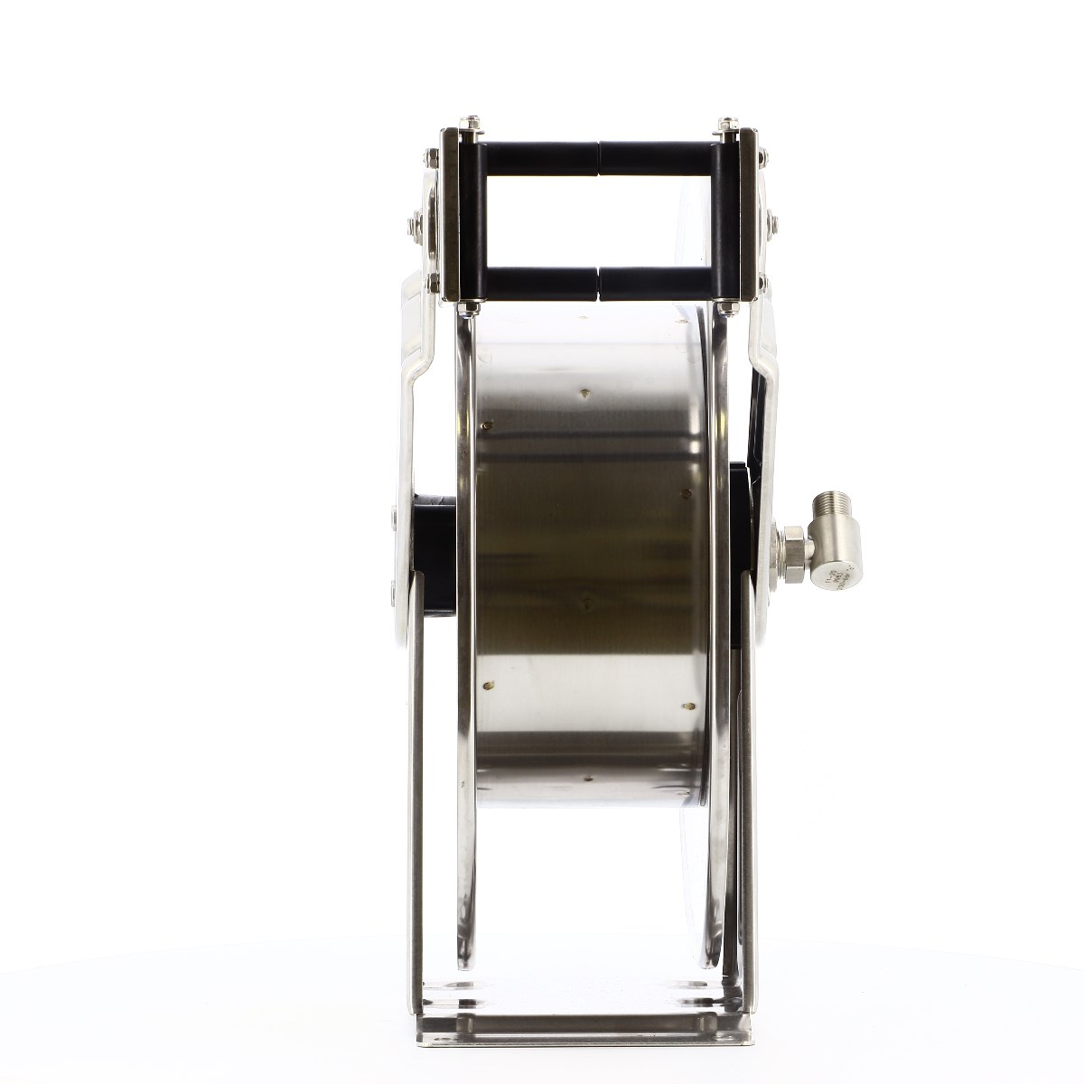 Bras réglable afin de favoriser la sortie du flexible en fonction de l'installation de l'enrouleur