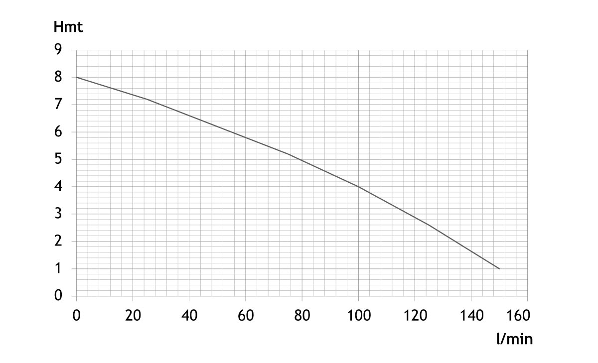 Pour HMT 8 mètres = débit de 0 m3/h ; 0 l/min